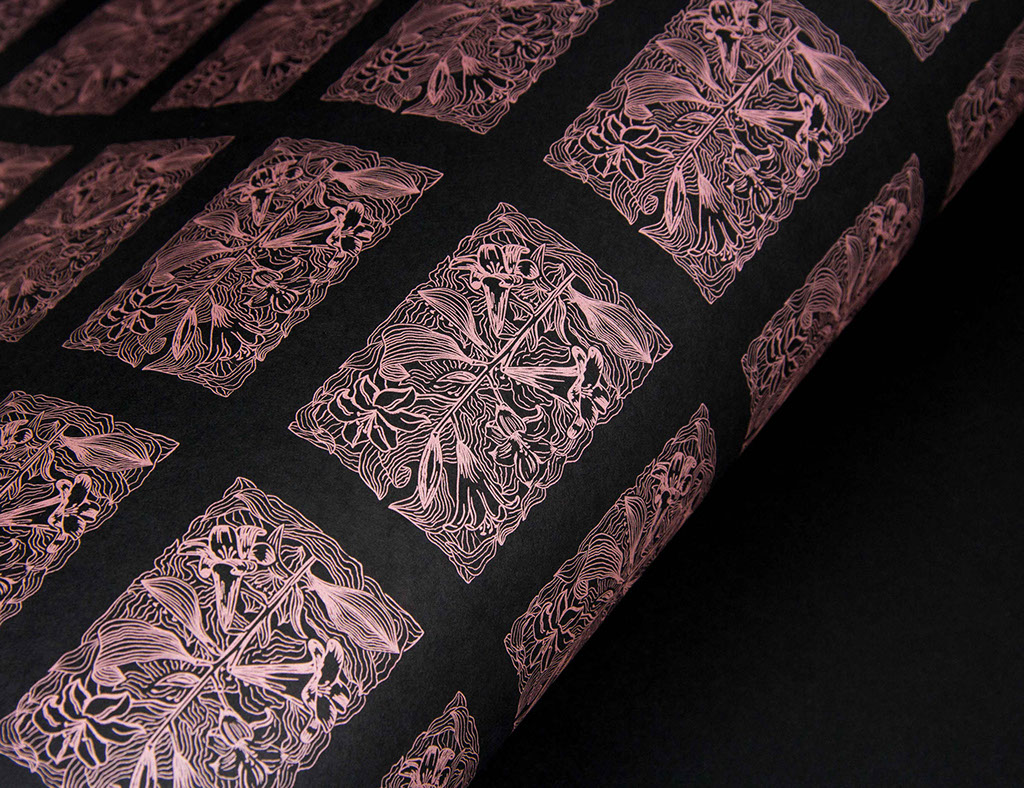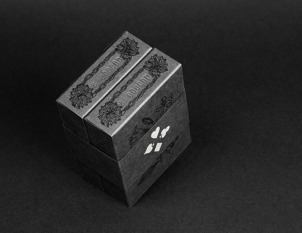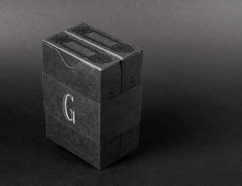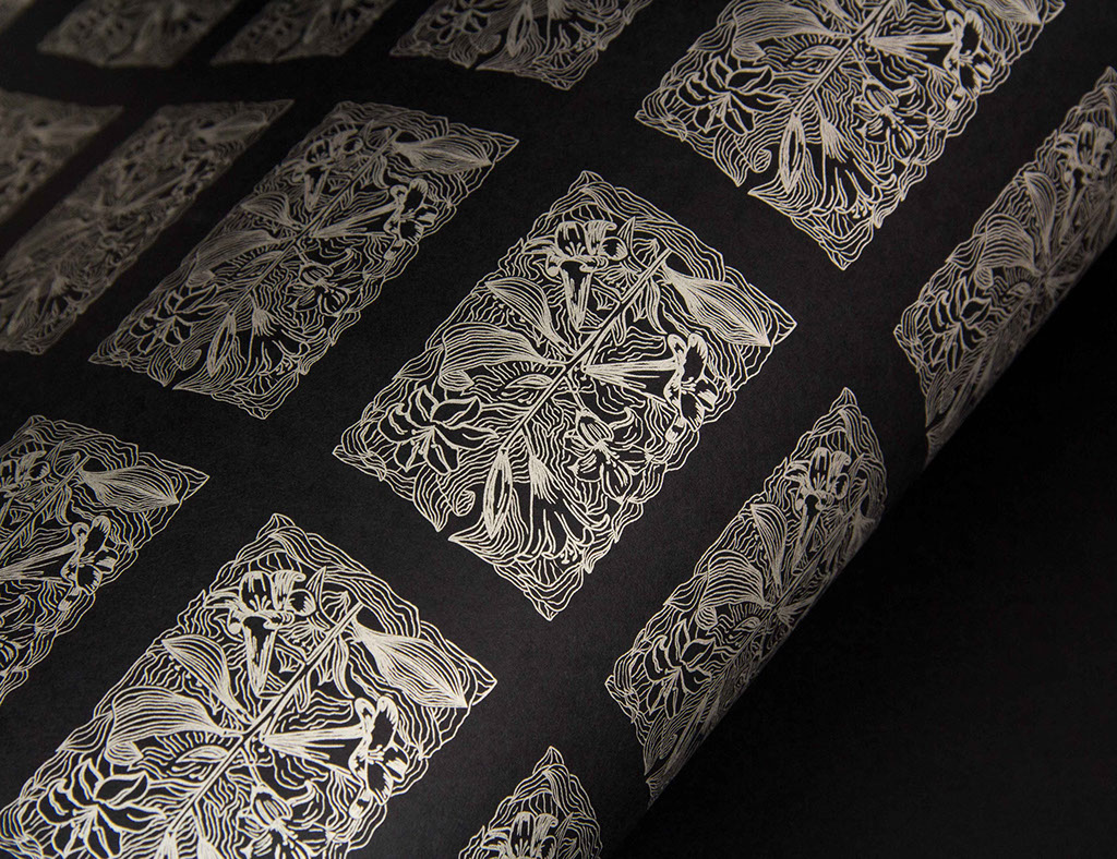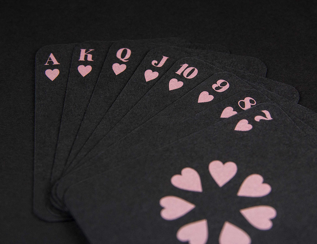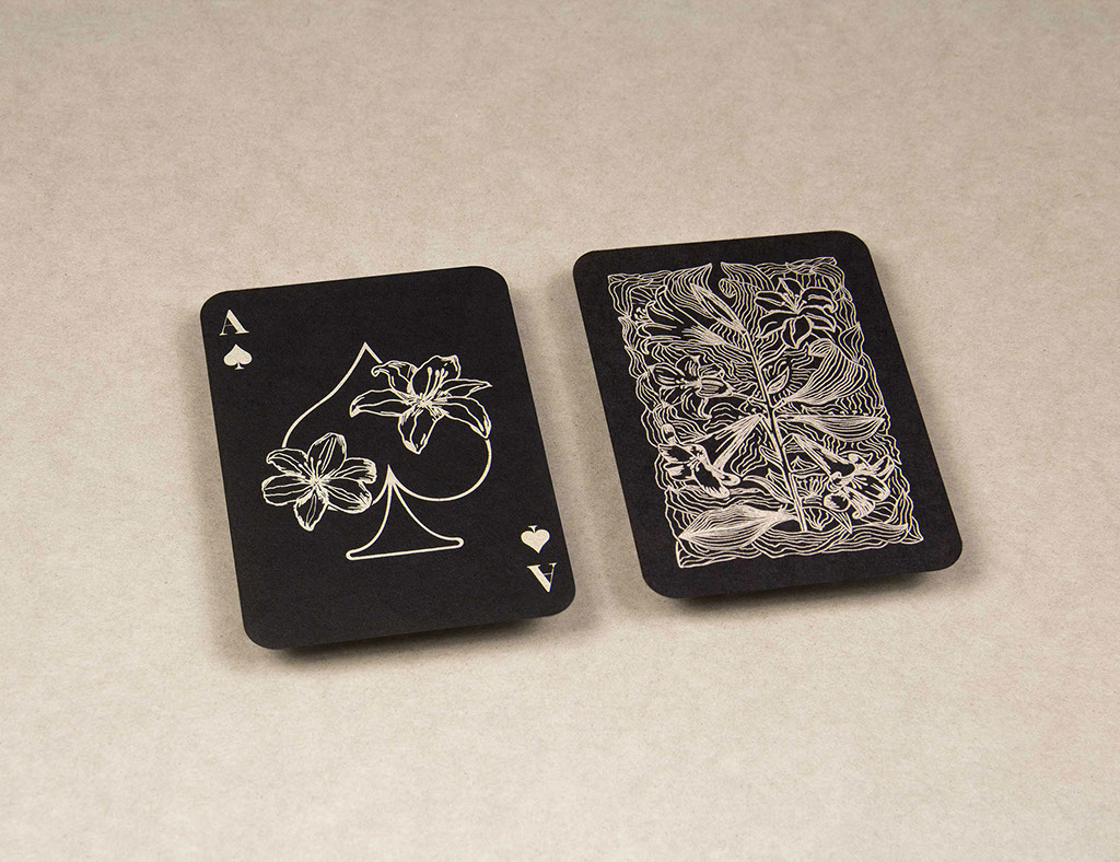 a označen sériovým číslem, takže je unikátní. Karty jsou tištěny sítotiskem na papír Colorplan Ebony.